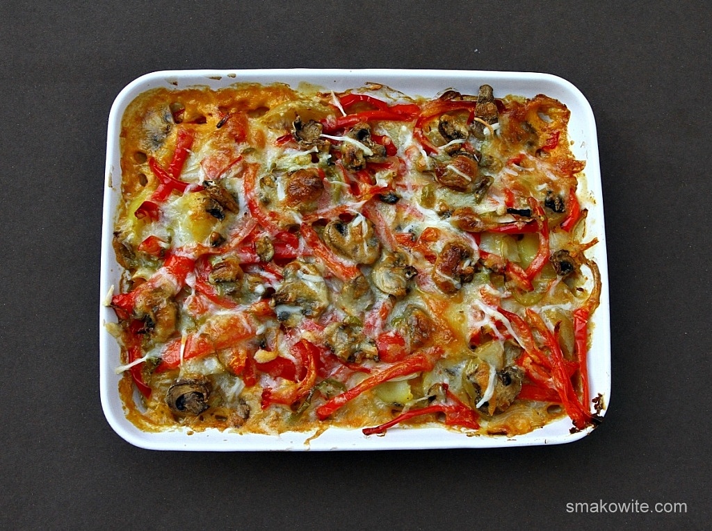 Zapiekanka ziemniaczano-warzywna z pieczarkami